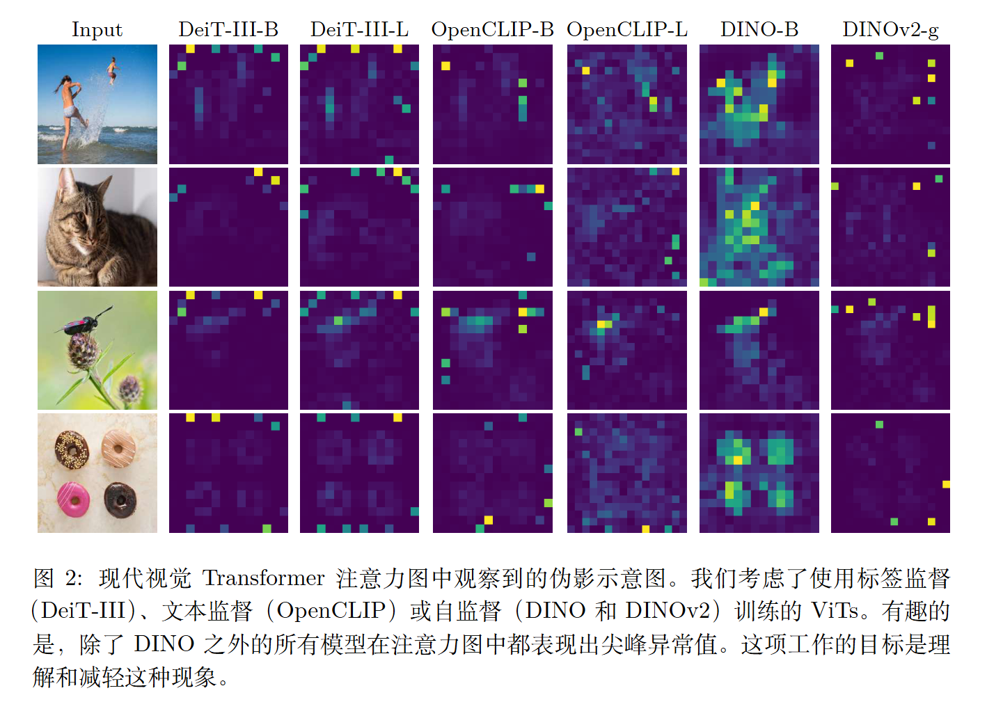 ICLR 2024的《VISION TRANSFORMERS NEED REGISTERS》指出了VIT中也会出现类似attention sinks的伪影。