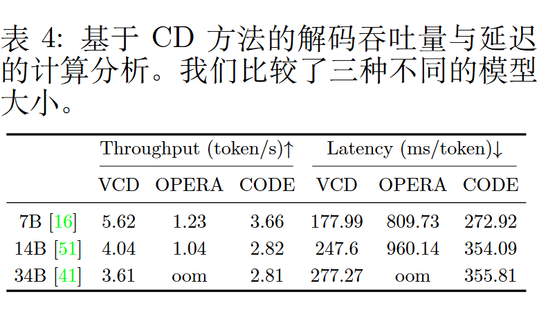 - CODE是一种无需训练的解码策略,利用自生成的描述来减少大型多模态模型中的幻觉现象。通过对比描述所包含的 Logit 信息与实际视觉内容,CODE 提升了模型响应的视觉一致性和连贯性。