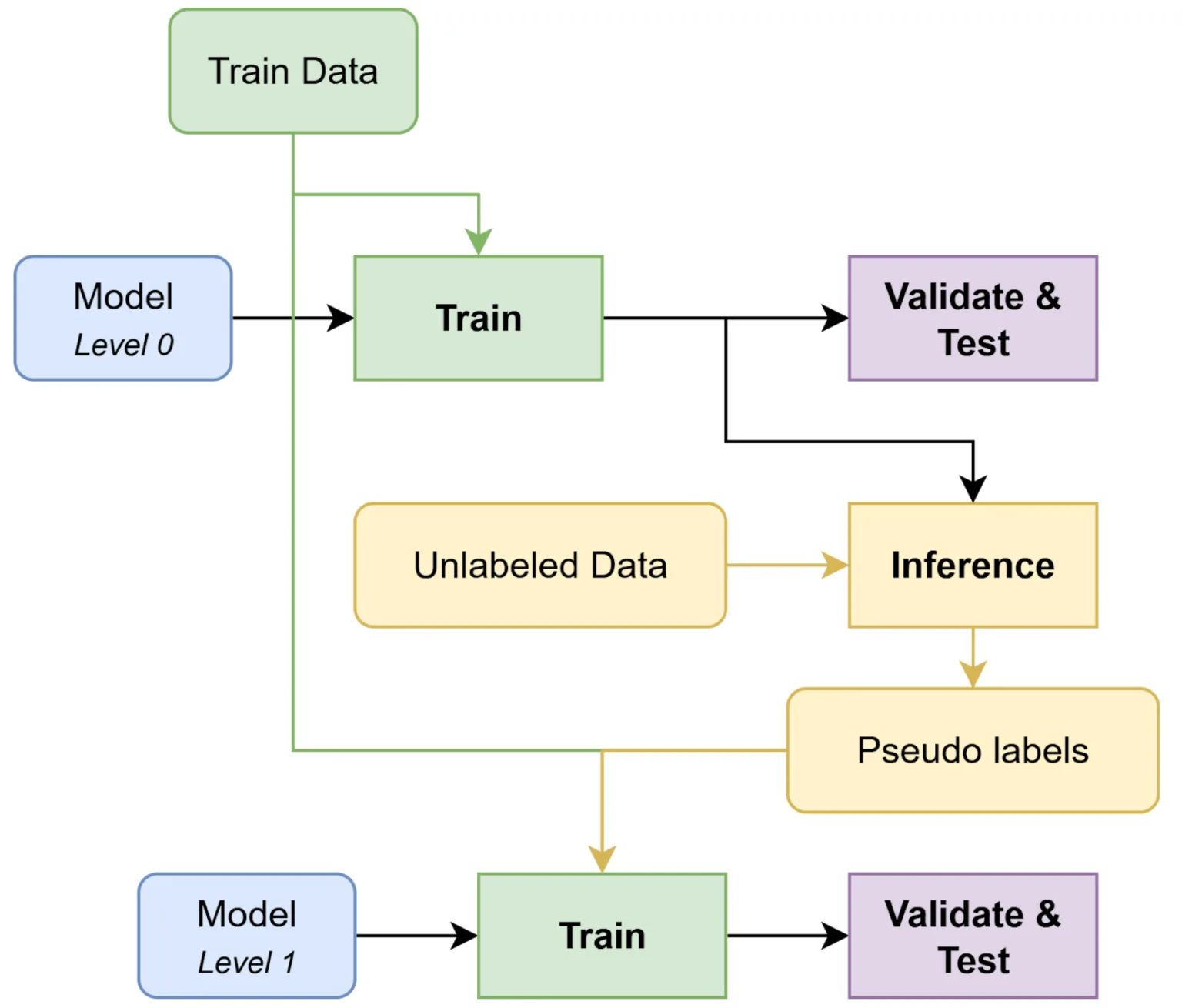 为什么重要: 更多数据 = 更多信号。伪标记提高了鲁棒性,起到了知识蒸馏的作用(学生模型从强有力的教师的预测中学习),甚至可以通过过滤掉模型不同意的样本来帮助去噪标记的数据。使用软标签 (概率而不是硬 0/1)可以增加正则化并减少噪声。