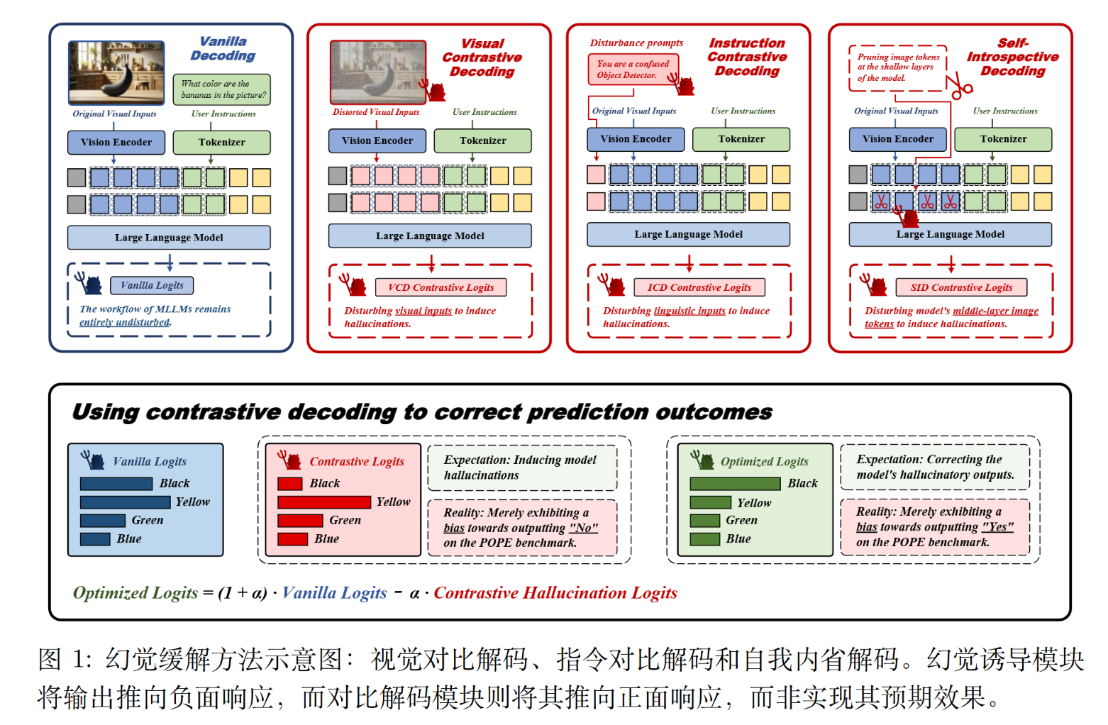 解码模块. $(1+\alpha)原始logits-\alpha\cdot 幻觉logits$