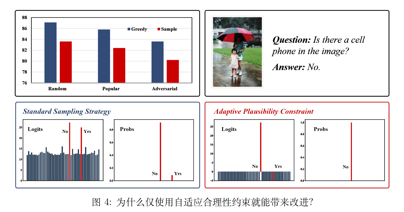 和 否:91.2%。采用贪心搜索策略时,模型始终生成正确答案” 否”。然而,在采用采样策略时,模型有 8.8% 的概率生成错误答案” 是”。