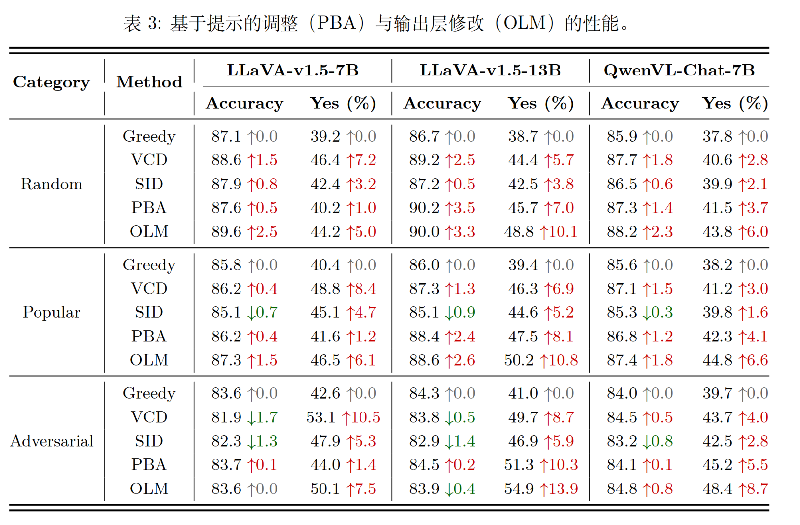 - 方法B (OLM):在输出层修改,如果“Yes”和“No”的概率很接近,就强行改成“Yes” 。