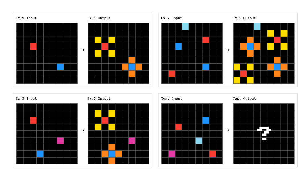 ARC-AGI(Abstraction and Reasoning Corpus,抽象与推理语料库) 是一个专门用于衡量 AI 系统泛化能力和解决新颖任务能力的基准测试,它与传统的基准测试不同,更注重考察 AI 的抽象推理能力,而不是单纯的记忆或模式匹配能力。